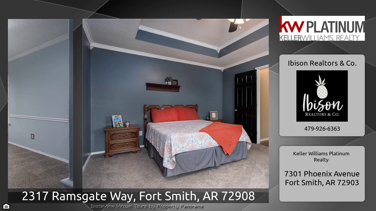 The Virtual Tour for the property at 2317 Ramsgate Way, Fort Smith, AR 72908 listed for $224,900: Other homes for sale by Ibison Realtors & Co. of Keller Williams Platinum Realty: Lovely french country style home offering 4 bedrooms, formal dining room, home office or flex room and great open concept living room and kitchen. Quartz countertops, painted cabinets and stainless appliances. Plenty of dining space in the breakfast nook or bar as well. Extra storage room in garage, pantry closet and nice sized garage. All bedrooms up with fresh paint and tons of storage. You'll love the …