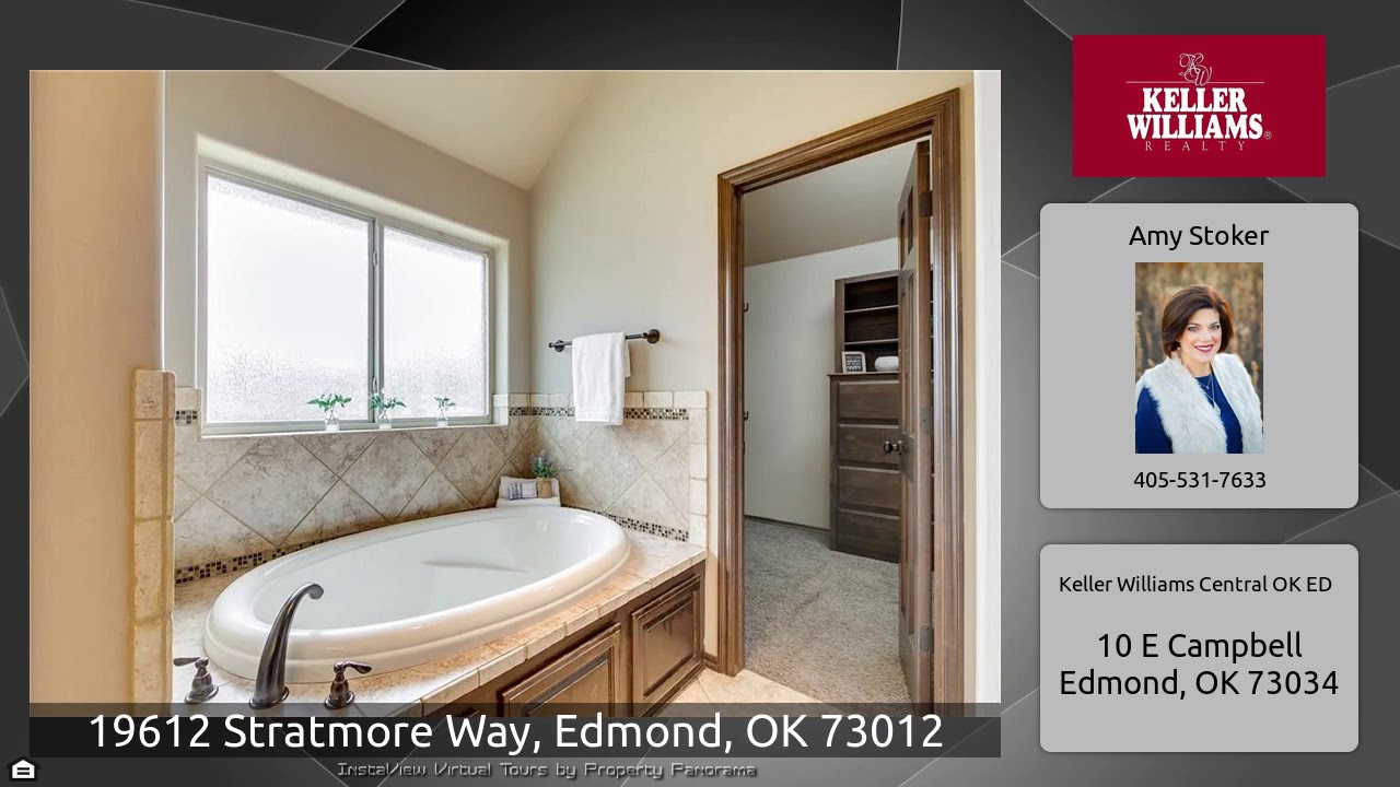 The Virtual Tour for the property at 19612 Stratmore Way, Edmond, OK 73012 listed for $325,000: Other homes for sale by Amy Stoker of Keller Williams Central OK ED: Honey, stop the car!! You will love the convenience of Thornhill as well as the flow and function of this home. Four bedrooms, three bathrooms, plus a study and a theater room all on one level! The open living/dining space is begging for entertaining. The french doors from the study open up to the front porch while the back door opens to the back porch. One of the guest rooms could serve as a second master since it has its own walk- …
