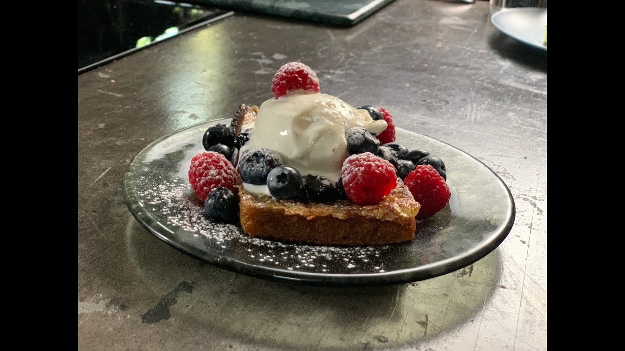 French toast with blueberry jam & vanilla ice cream