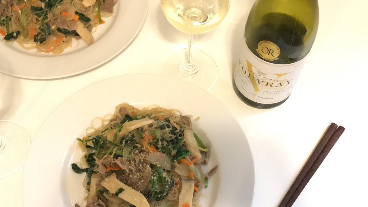 簡単に作れる焼きビーフンとやや甘口のヴーヴレイを合わせてみました。醤油ベースの甘めのビーフンなので、ちょい甘口のワインとよく合いますよ。