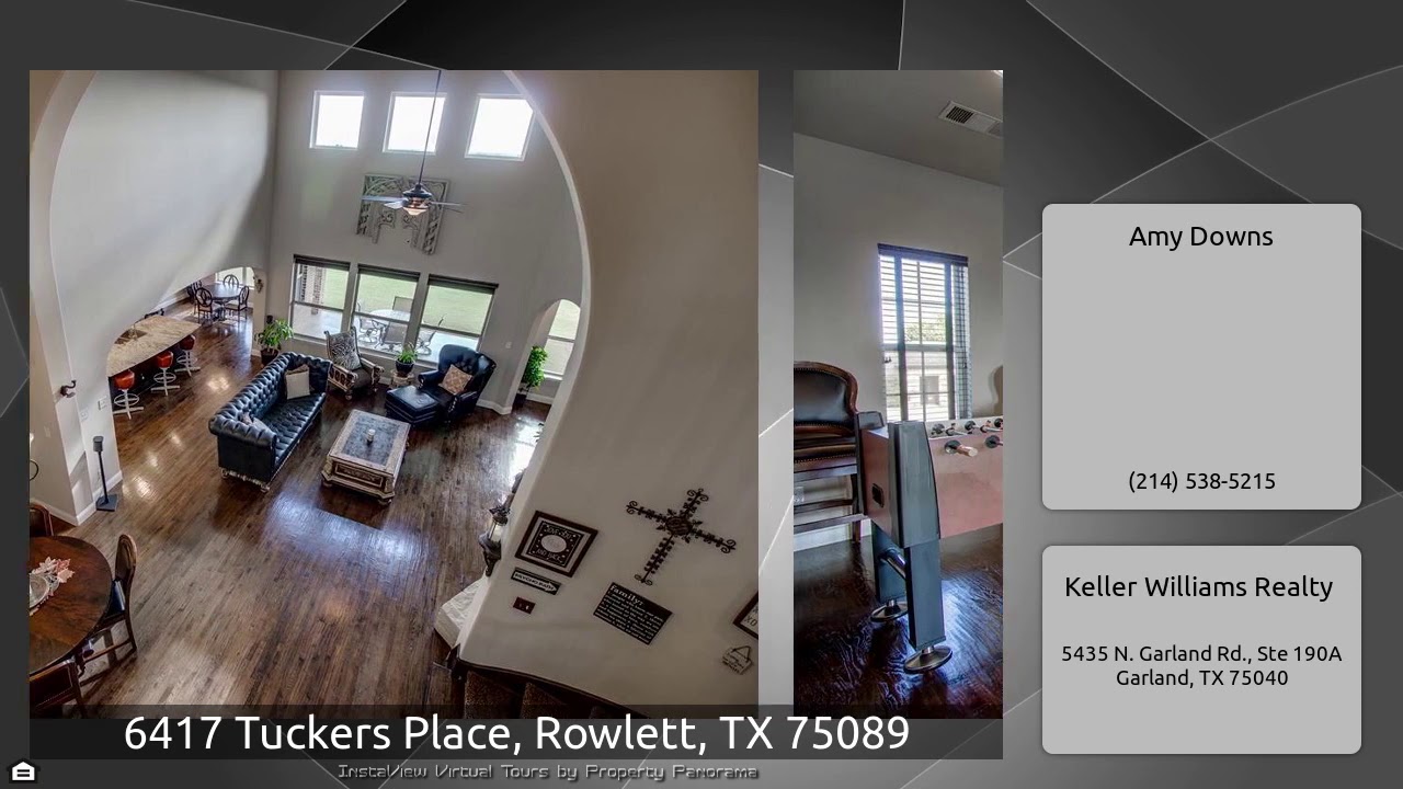 The Virtual Tour for the property at 6417 Tuckers Place, Rowlett, TX 75089 listed for $430,000: Other homes for sale by Amy Downs of Keller Williams Realty: Gorgeous and meticulously updated CalAtlantic home! Hardwood floors throughout, stone to ceiling fireplace in family room and a layout for entertaining inside and out. Study with French doors, secondary bedroom down with full bath, two dining areas and a gourmet kitchen with double ovens, gas cooktop with grill, large granite island with gorgeous cabinets and a walk in pantry. The master suite has a centered garden tub with an oversized …