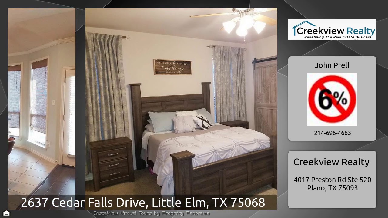 The Virtual Tour for the property at 2637 Cedar Falls Drive, Little Elm, TX 75068 listed for $314,900: Other homes for sale by John Prell of Creekview Realty: Beautiful home in spectacular Sunset Pointe featuring Frisco ISD! Better than new with many upgrades : downstairs open floor plan with foyer leading into spacious dining and masterfully finished kitchen overlooking the family room. Stainless steel appliances and granite countertops. Study features custom cabinets and french doors. Master bath with dual sinks and lavish shower with tub area.