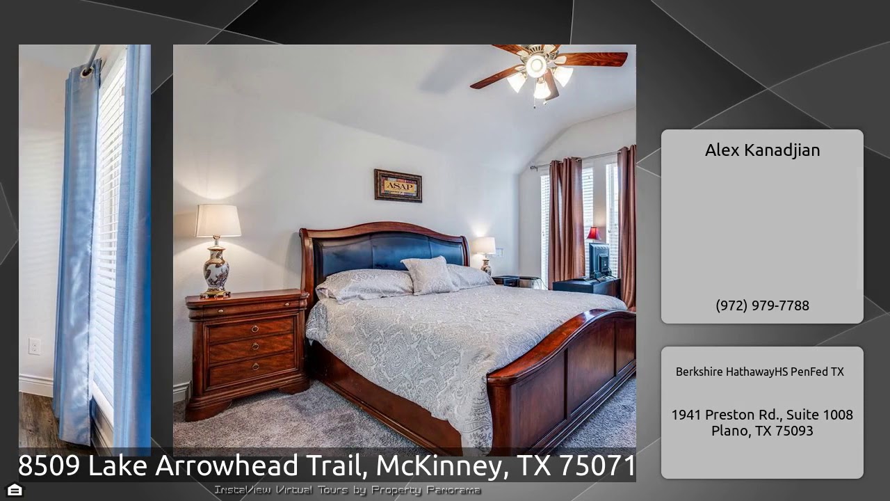 The Virtual Tour for the property at 8509 Lake Arrowhead Trail, McKinney, TX 75071 listed for $374,900: Other homes for sale by Alex Kanadjian of Berkshire HathawayHS PenFed TX: PERRY HOME LESS THAN 1 YR OLD-HOME IS UNDER BUILDER WARRANTY! Mahogany Front Door. Entry w 12-foot Ceiling. Library w French Doors. Formal Dining Room Opens to the Family Room w a Wall of Windows & Cast Stone Fireplace. Ceramic Tile Floors Flow Throughout. Kitchen Features an Oversize Island w Built-In Seating Space. Master Bedroom w a Wall of Windows. Double Doors Lead to the Master Bath w Dual Vanities Separated …