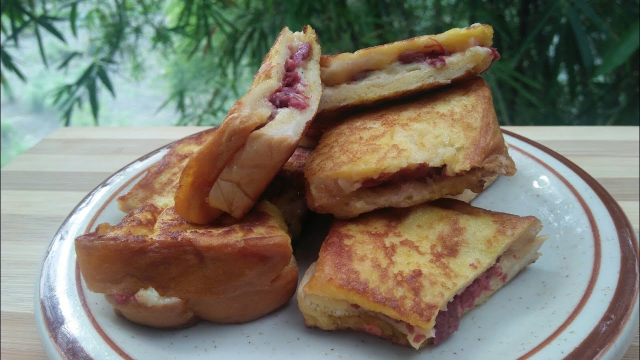 Ingredients: -Loaf Bread -1/2 Cheese -1can corn beef -3pcs Egg -1tbsp Sugar -1/2tsp Salt #homemadefrenchtoast #pinoystyle Thank you for watching!!😊 agahanangFranceFrenchFrench recipesRecipeRecipePasarapinToastEasyVideoVlogYouTube