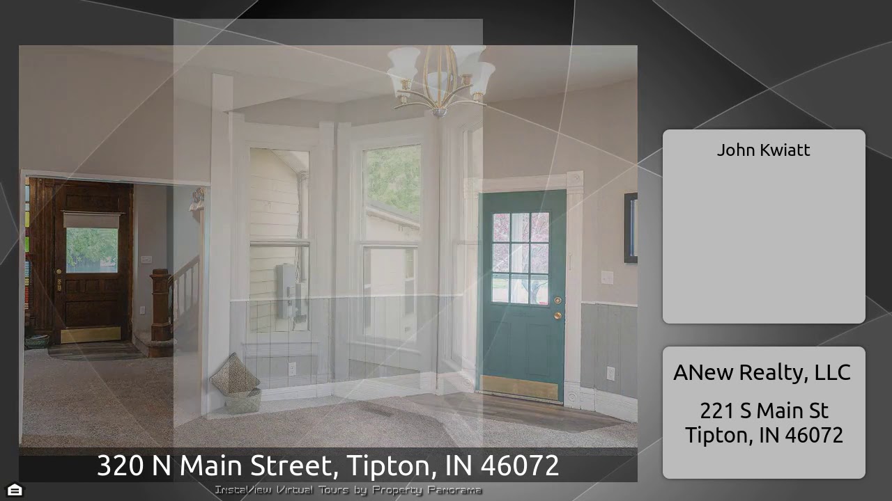 The Virtual Tour for the property at 320 N Main Street, Tipton, IN 46072 listed for $238,000: Other homes for sale by John Kwiatt of ANew Realty, LLC: Enter original 8' Front door from the 640sqft wraparound front porch in to the Living Room / Library with original woodwork. To the Dining area with a Den & Full bath through the french dr to the side. On to dine in Kitchen and entry to Master suite w/ Bay window overlooking the HUGE private back yard, a gardeners paradise. Out the back door into large 2 season room and out to over 400sqft of decking. Extra Large Kitchen features all new …