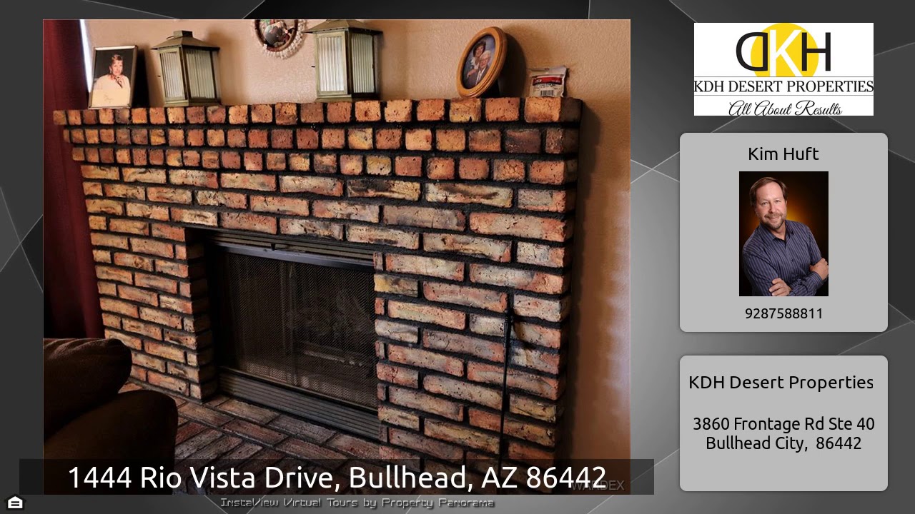 The Virtual Tour for the property at 1444 Rio Vista Drive, Bullhead, AZ 86442 listed for $194,000: Other homes for sale by Kim Huft of KDH Desert Properties: In Town Location! Classic Bullhead City Home with a wide open interior, large bedrooms, full length covered back patio and side yard Boat/Trailer Parking on concrete. From the entry you immediately see the vaulted ceilings and colorful Mexican Brick fireplace. The kitchen features a breakfast bar and wraparound counter top. The dining area has a builtin hutch and upgraded ventilator French door leading to the backyard covered patio. The …