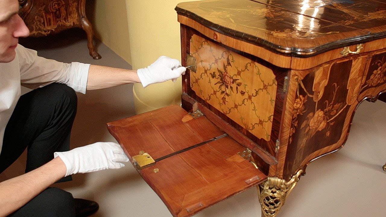 When closed, this table may not seem like one of the most complex pieces of European furniture ever made. However, once opened, its concealed drawers and hidden features are exposed, and the entire piece transforms into a dressing table, orpoudreuse. Scholars believe it was commissioned as a wedding gift from Abraham (1711–1793) and David Roentgen (1743–1807) by Friedrich August III, Elector of Saxony, to his bride in 1769.