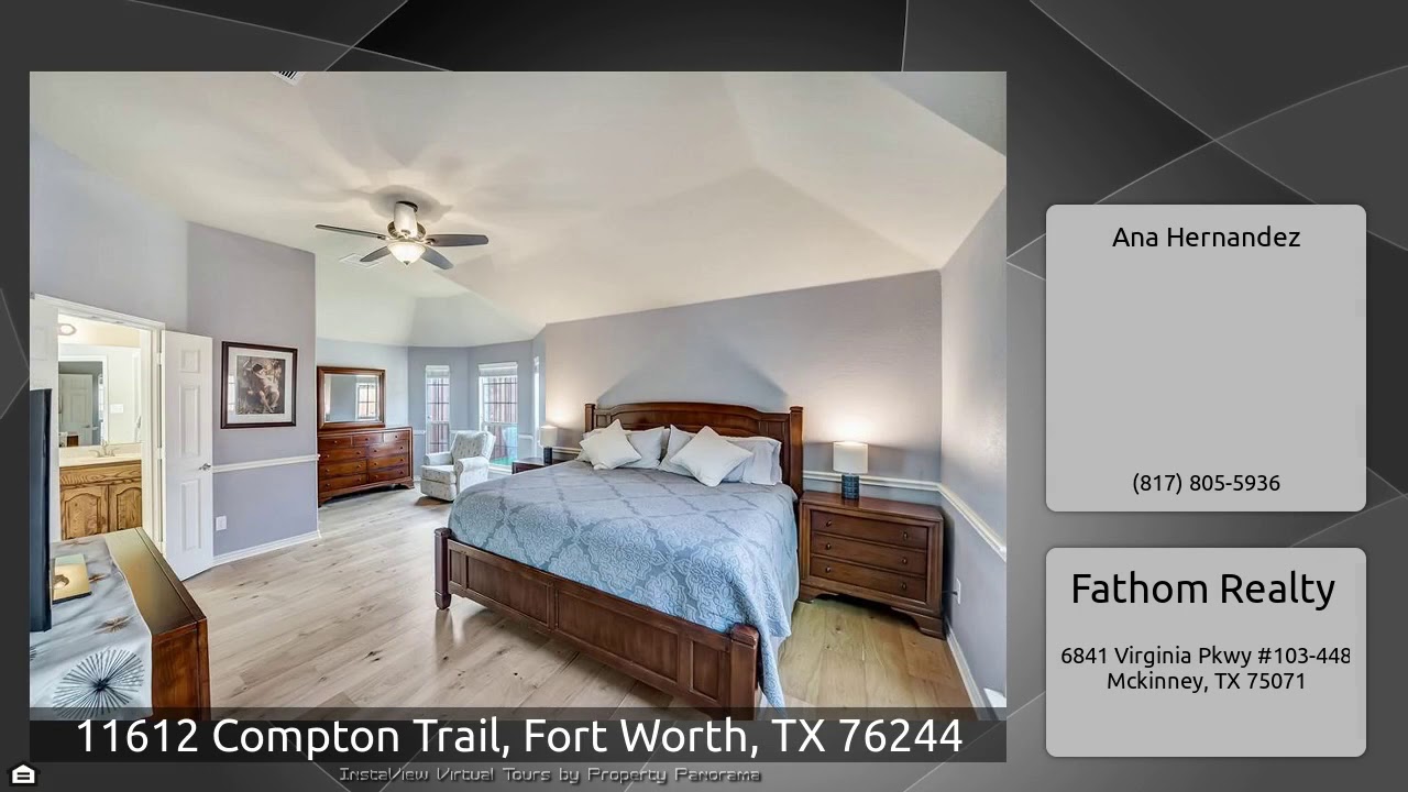 The Virtual Tour for the property at 11612 Compton Trail, Fort Worth, TX 76244 listed for $375,000: Other homes for sale by Ana Hernandez of Fathom Realty: WOW! This immaculate 1.5 story 5 bed 3.5 baths has it ALL! Top rated Keller ISD! *UPGRADES GALORE* Including: granite counter tops, SS appliances, double ovens, hard wood flooring and MORE. Formal study with french doors and large formal dining. Dream backyard perfect for family BBQs and football games! Privacy fence . Extended covered patio is equipped with lighting, outdoor fan, TV connection and wood burning fireplace; ready to …