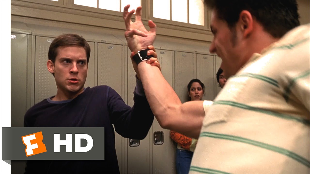 Spider-Man – Peter vs. Flash: Peter (Tobey Maguire) uses his new abilities to win a fight against the school bully, Flash Thompson (Joe Manganiello).