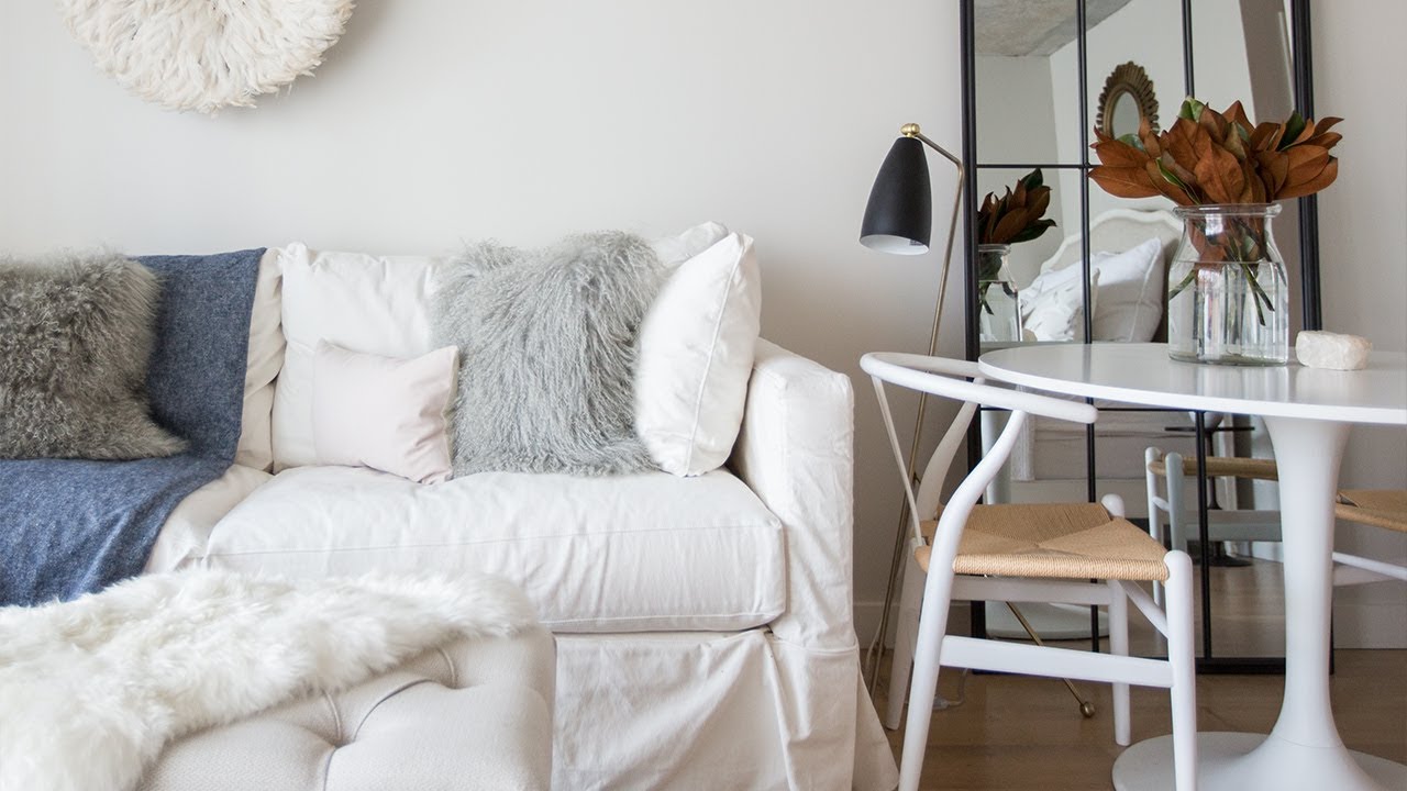 Designer Natalie Chong shares a 400-square-foot bachelorette pad that takes small space condo living to new heights. Get her tips for designing a functional studio apartment using double-duty furniture, custom storage and zones. Plus, see how she created a cozy, light-filled space with white furniture and plush textiles.