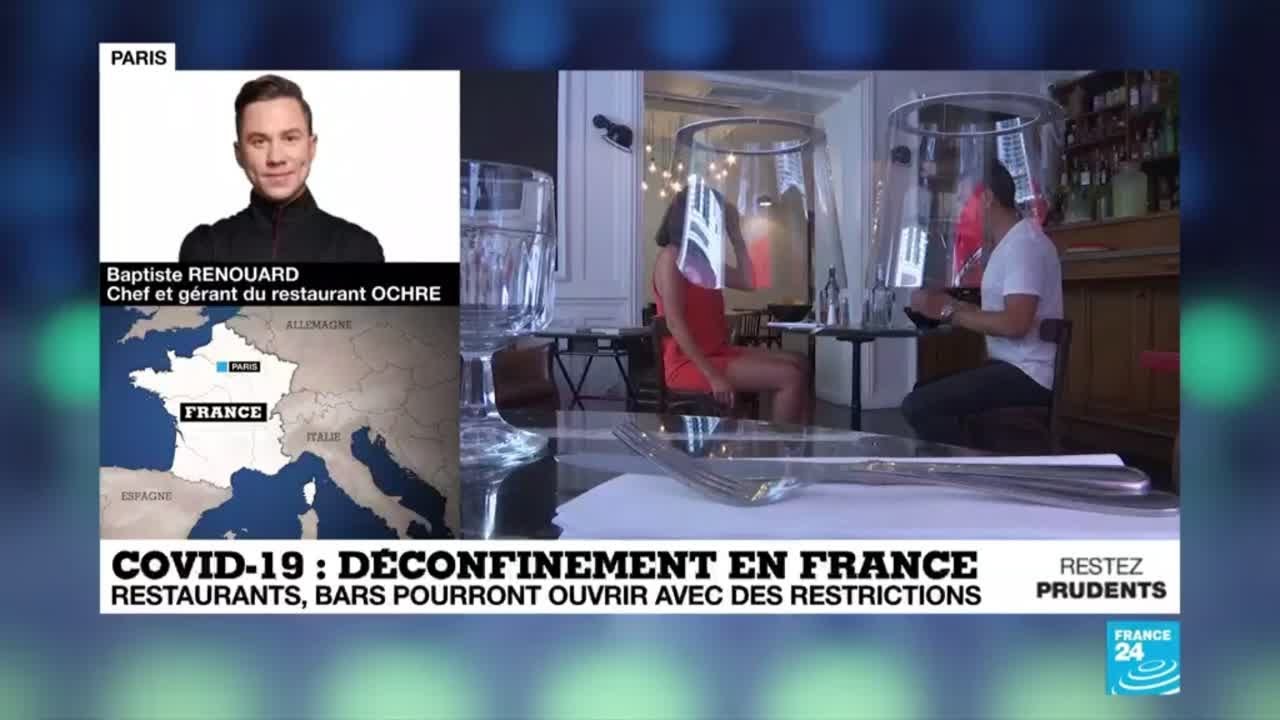 Baptiste Renouard, chef et gérant du restaurant OCHRE, était l’invité de France 24, jeudi 28 mai, pour réagir aux annonces du Premier ministre sur les assouplissements pour la réouverture des restaurant, bars et cafés.