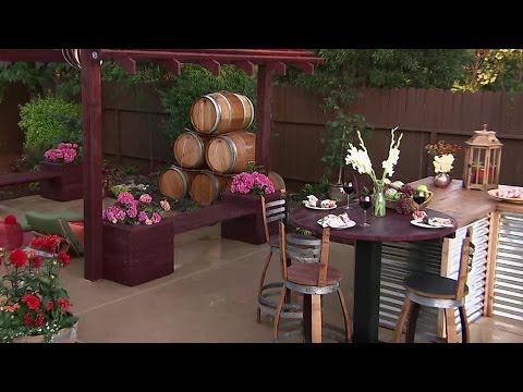 An overgrown yard is transformed by Matt Blashaw using wine barrels. backyardsBarrelcorrugated metaldiy networkfire featureFranceFrenchfrench wineHavenlandscaperslandscapingmatt blashawoutdoor kitchenpub tableVideoVlogwater featureWinewine barrel havenyard crashersYouTube