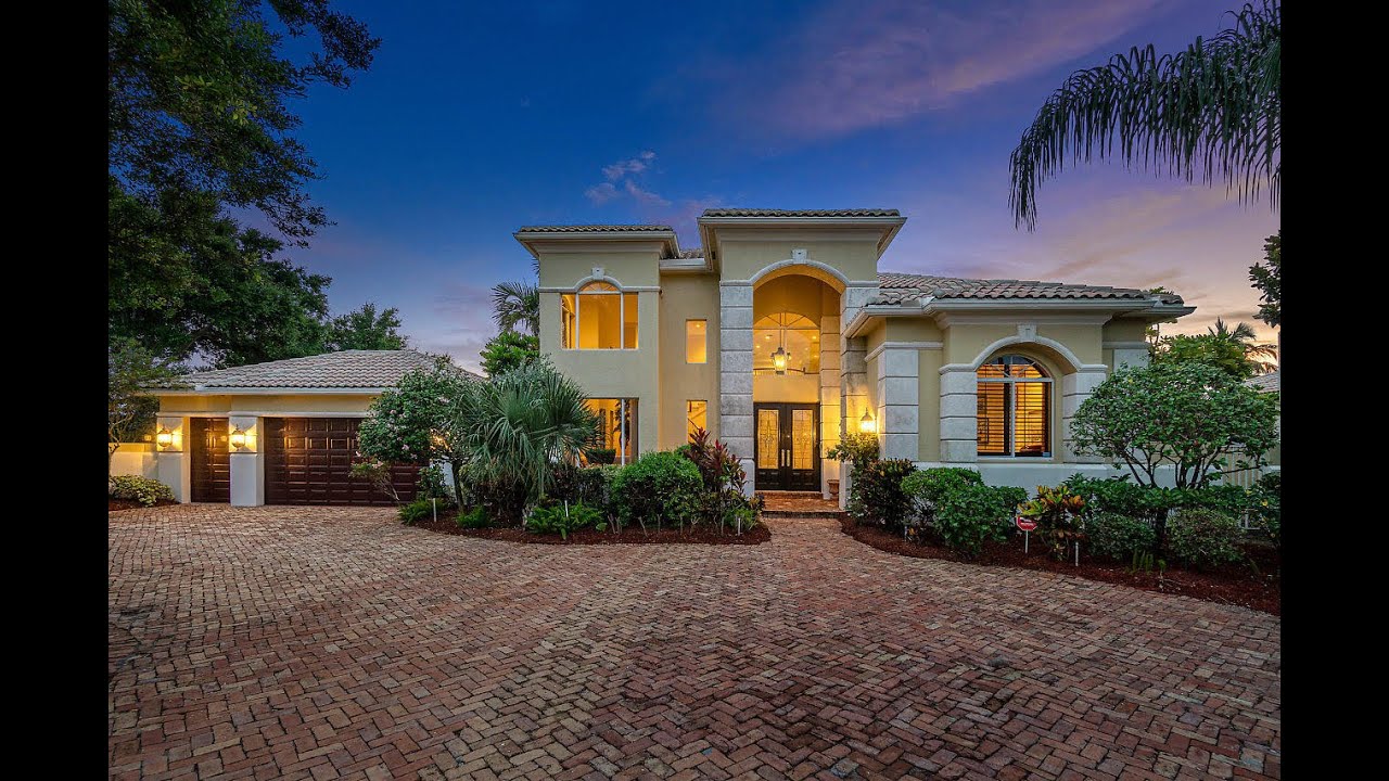 Situated on a trophy point lot in The Isles at Hunters Run Country Club, this custom, French provincial inspired estate features over 4700sf of living space and 3000sf of outdoor space with breathtaking sunset views of the water and east golf course. The grand foyer greets you with a magnificent open arm staircase, chandelier and soaring 25 ft ceilings. Other interior features include separate his and her master bath & walk-in closets, en-suite guest rooms, library with custom wood built-ins, formal dining room, loft, gas fireplaces in the great room and master suite, automatic shades and whole-house generator. Beautiful french doors throughout lead you to a sprawling chicago-brick patio with heated pool & jacuzzi spa, separate pool bath and outdoor shower.