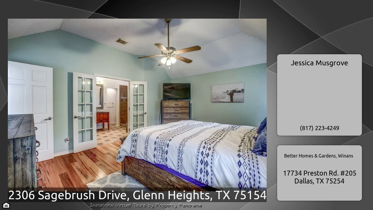 The Virtual Tour for the property at 2306 Sagebrush Drive, Glenn Heights, TX 75154 listed for $215,000: Other homes for sale by Jessica Musgrove of Better Homes & Gardens, Winans: Welcome Home! This stunner sits on a large lot with an over sized back yard! Open concept, large living area with fireplace. This home boasts beautiful wood floors throughout. The open and spacious kitchen has light granite counter tops and includes a breakfast bar and breakfast nook; there is a separate dining area too! Large Master suite has french doors leading into the bathroom. Double basins, separate shower, …