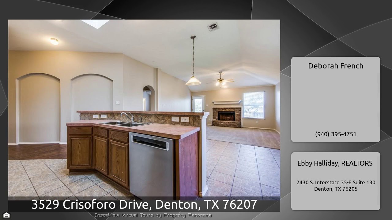The Virtual Tour for the property at 3529 Crisoforo Drive, Denton, TX 76207 listed for $228,000: Other homes for sale by Deborah French of Ebby Halliday, REALTORS: Seller offering $4,000 towards buyers' closing costs or upgrades! Located next to the UNT-Discovery Park Research Center, Vela Soccer fields and soon to open Dog Park. This single story brick home has an inviting front porch. The entrance to the home leads into a split floor plan with two bedrooms and a separate living area with a full bath for the children or mother in law. The open kitchen overlooks the dining room and Living …