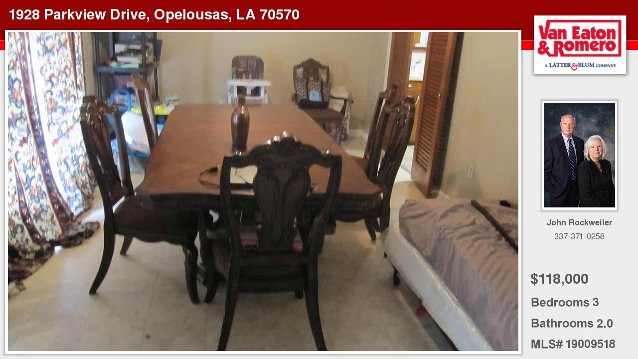 1928 Parkview Drive Opelousas Louisiana Homes for Sale | www.latter-blum.com | John Rockweiler with Latter & Blum Companies | See full property details at | Nice family home with an extra lot behind it. Formal dining room could also make a home office. Tongue and grove vaulted ceiling in family room. Glass french door look onto patio and backyard. Circular driveway. Three year old roof and HVAC replaced six years ago.