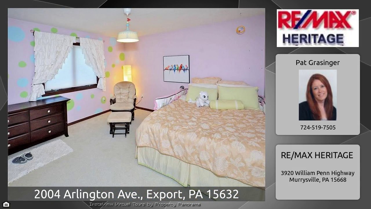 The Virtual Tour for the property at 2004 Arlington Ave., Export, PA 15632 listed for $534,900: Other homes for sale by Pat Grasinger of RE/MAX HERITAGE: Stunning 5 Bed Rm, 4 1/2 Bath, 3 Car Garage Custom Built Gilmore Home Is Turn Key Ready ! 8Ft. French Doors Open To 9Ft. Ceilings, Open Floor Concept, Formal Liv. Rm., Formal Dining Rm Complete W/ Crown Molding, 1St Flr Laundry Rm. French Drs Open To; 16X12 Kitchen W/ Island, 8X5 Pantry, High End S.S. Appliances. 1St Flr Family Rm Off Kitchen W/ Gas Fireplace, Morning Rm W/ Slider To Rear Covered Deck Over Looks Huge Rear Yard. Staircase Will …