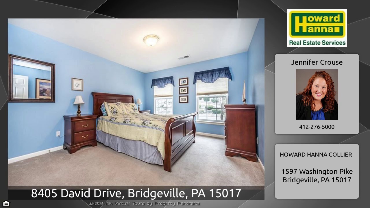 The Virtual Tour for the property at 8405 David Drive, Bridgeville, PA 15017 listed for $439,900: Other homes for sale by Jennifer Crouse of HOWARD HANNA COLLIER: Spacious brick-front home with A+ location in Parkes Farm Estates. Easy access to SF school campus, I79, Rt 50, shops, dining & more! Greeted by a 2 story foyer, private office through French doors, formal Living room & spacious dining room ideal for family dinners. You’ll love the large Family room with gas FP that opens into a spacious Kitchen with functional layout featuring HW floors, oversized island, new granite countertops & …