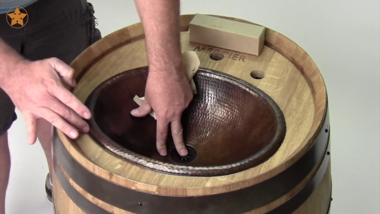 Premier Copper Wine Barrel Vanity & Copper Sink Package With Faucet offers this French wine barrel vanity that has been upcycled from a winery in Napa California. These barrels are used wine barrels that have been completely disassembled, cleaned and then reassembled. This barrel has been upcycled into a piece of furniture and will not fall apart and distort over time like other barrels on the market We show you step by step how to install this oval surface mount copper sink into the wine barrel vanity from Premier Copper.