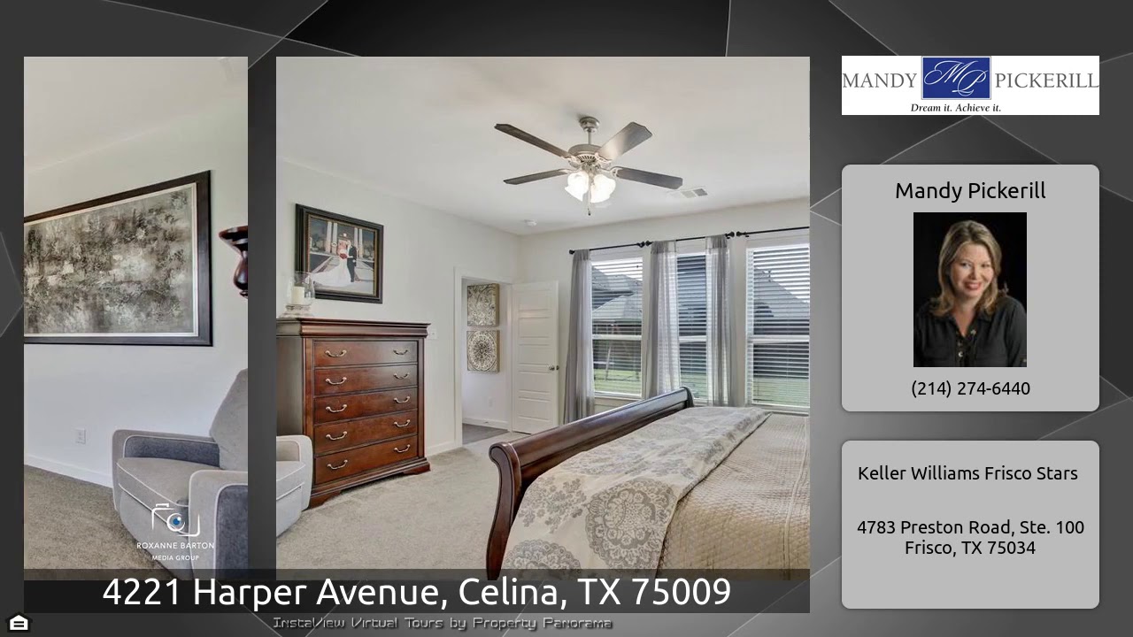 The Virtual Tour for the property at 4221 Harper Avenue, Celina, TX 75009 listed for $414,000: Other homes for sale by Mandy Pickerill of Keller Williams Frisco Stars: Beautiful Highland home with front porch elevation. 5 spacious bedrooms, glass french doors to study, game room, playroom, dining and extended patio. Vaulted ceilings in family with extended stone fireplace. Chef style Kitchen with granite counter tops, stainless appliances and painted cabinets boasts beautiful accent feature on island. Inviting wood flooring in the entry, dining, family, kitchen and breakfast nook. 3 car …