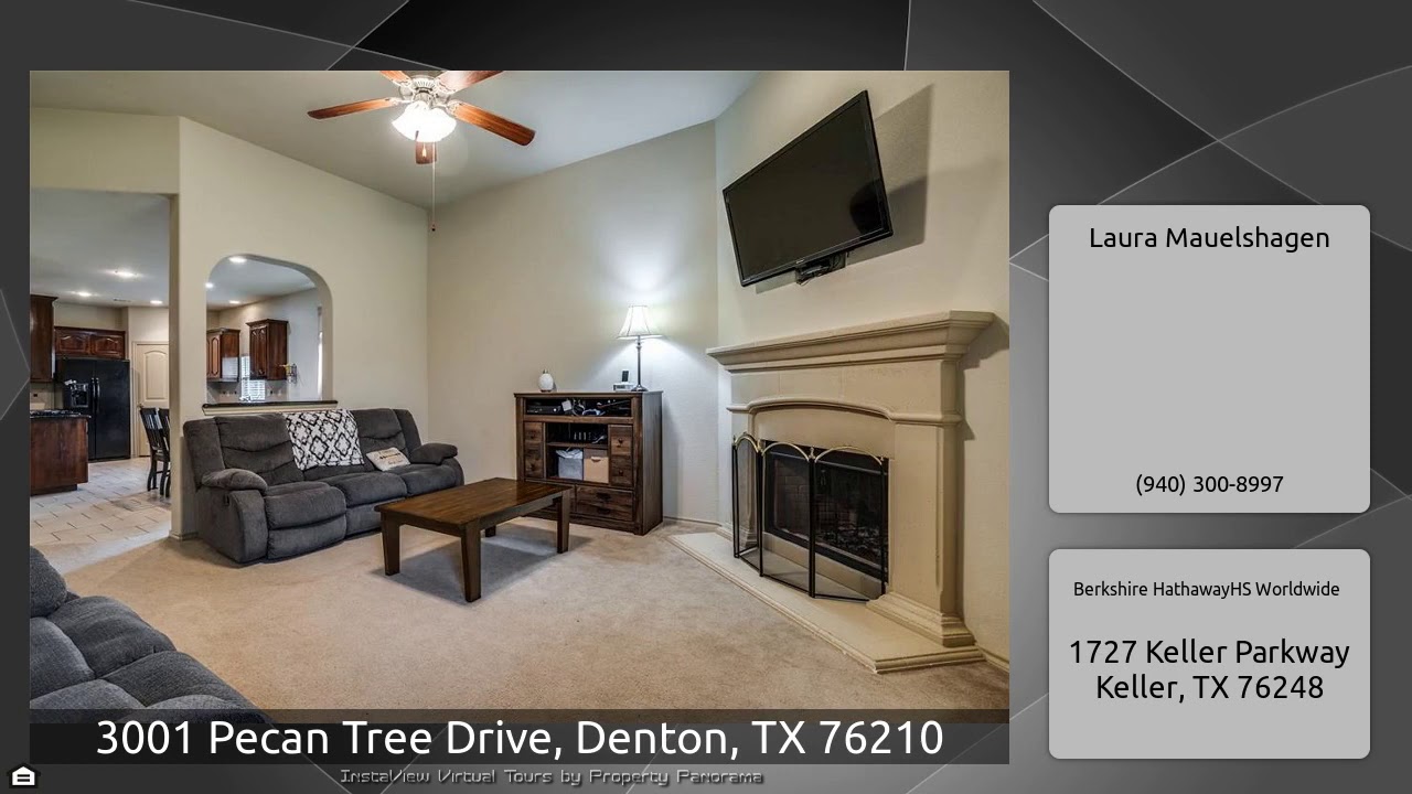 The Virtual Tour for the property at 3001 Pecan Tree Drive, Denton, TX 76210 listed for $277,900: Other homes for sale by Laura Mauelshagen of Berkshire HathawayHS Worldwide: Does all this time at home have you dreaming of more space? This lovely 2-story property on a cul-de-sac boasts two large living areas, an oversized master bedroom, three additional roomy bedrooms upstairs, a study with French doors, vaulted ceilings, and an open concept living-dining-kitchen area, plus a covered patio, wood fenced yard, and 2 car garage! Tons of natural light, a gas fireplace, and fresh paint provide …