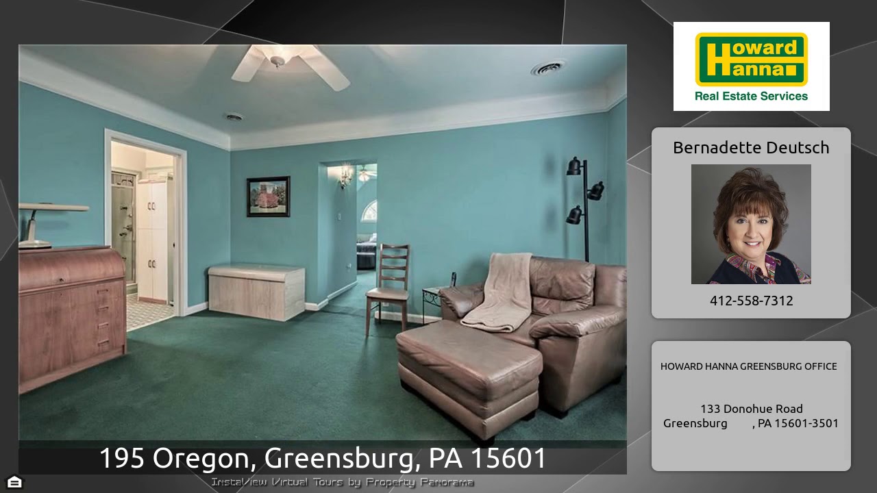 The Virtual Tour for the property at 195 Oregon, Greensburg, PA 15601 listed for $370,000: Other homes for sale by Bernadette Deutsch of HOWARD HANNA GREENSBURG OFFICE: Be the next owner of this immaculate stately brick 3 story home situate on approximately 1.3 level acres. The marble foyer greets you as you enter this remarkable home. The dining room features oak & glass French doors & gleaming hardwood flooring. Updated kitchen w/center island & custom tiled backsplash. The formal living room has a beautiful fireplace & rich décor. The family room is bright & is surrounded by plenty of …
