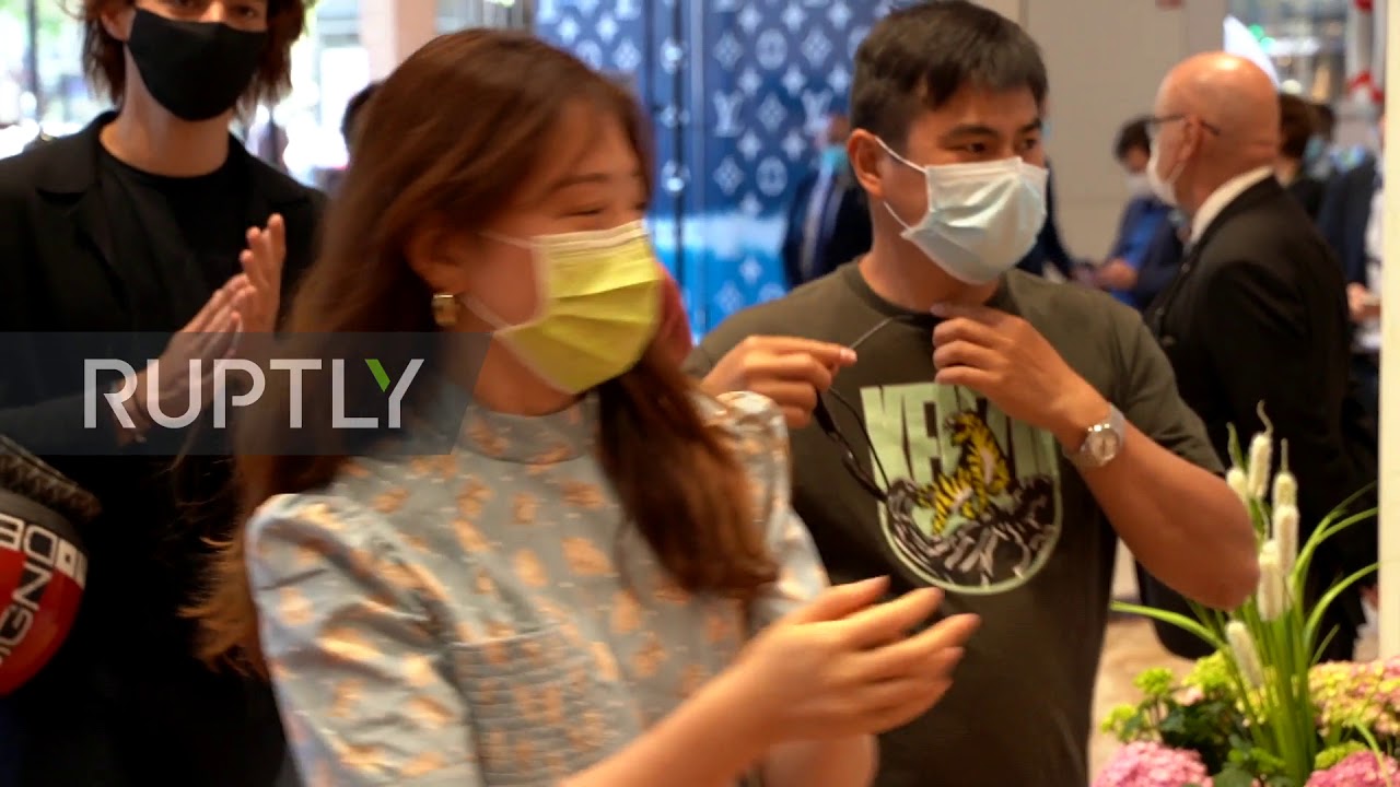 People queued up outside the famous Galeries Lafayette flagship store in Paris on Saturday, as the famed store reopened its doors to a round of applause after three months of closure due to the coronavirus outbreak.