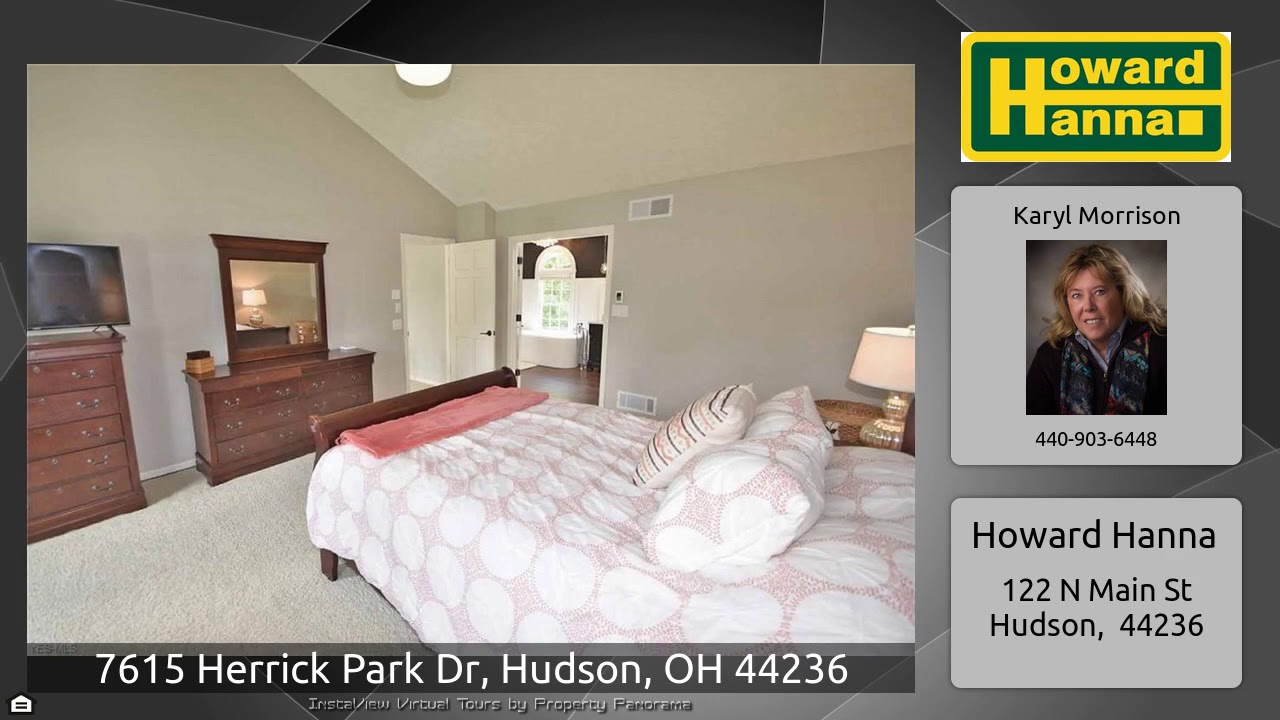 The Virtual Tour for the property at 7615 Herrick Park Dr, Hudson, OH 44236 listed for $477,000: Other homes for sale by Karyl Morrison of Howard Hanna: Super sharp 4 bedroom colonial on beautiful lot backing to .63 acre Darrow Road City Park w/1.25 mile hiking-walking trail. Prestige built 4 bedroom, 3 1/2 bath colonial beautifully updated throughout. All white trim & moldings, hardwood floors in kitchen, casual dining & 2 story foyer. 9 ft. ceilings on first floor, foyer flanked by spacious formal dining & pvt. den/office w/French doors opposite. Well appointed custom completed …