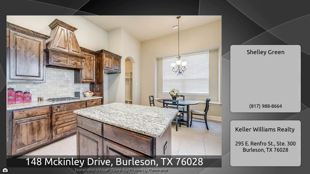 The Virtual Tour for the property at 148 Mckinley Drive, Burleson, TX 76028 listed for $375,000: Other homes for sale by Shelley Green of Keller Williams Realty: Gorgeous 3-2.5-3 with amenities galore! Study off entry with french doors & built-in desk! Large family room with stone gas fireplace opens to kitchen, breakfast nook & formal dining. Tile & wood floors throughout except one bedroom. The kitchen has a breakfast bar with stone front, an island with granite countertops, double sink, stainless steel appliances, & double-stained knotty alder cabinets. Mudroom off large utility room. …