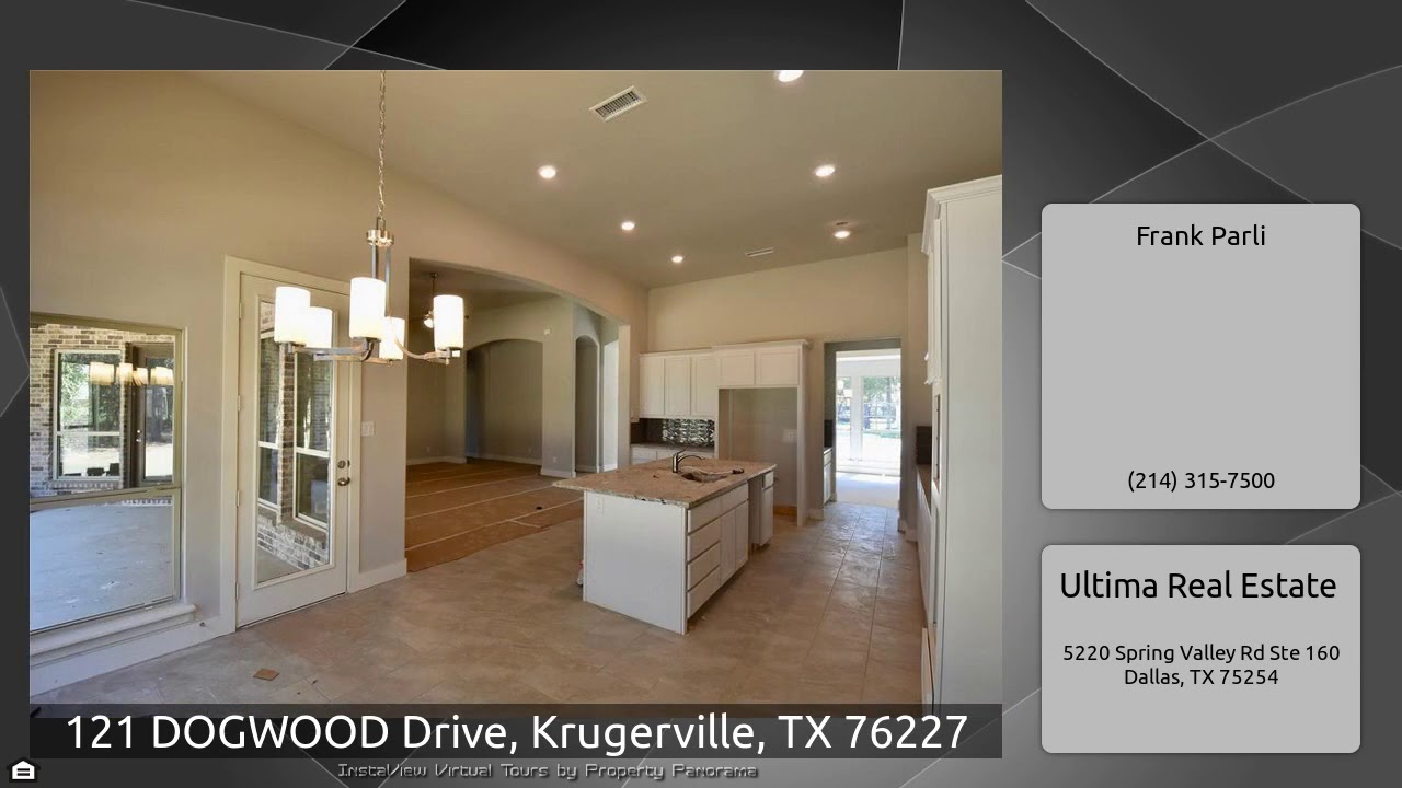The Virtual Tour for the property at 121 DOGWOOD Drive, Krugerville, TX 76227 listed for $479,000: Other homes for sale by Frank Parli of Ultima Real Estate: $40K PRICE DROP! TREES TREES TREES!! BRAND NEW CUSTOM ONE STORY 4-2-3 CAR WITH GAME ROOM RESTING ON HEAVILY WOODED HALF-ACRE HOMESITE. Beautiful drive-up with gorgeous brick and stone combination. Fantastic layout features large Formal Dining with barrel vault, HUGE Study with French Doors and barrel vault. HUGE Family Room with 13' ceiling, 20' x 14' Master Bedroom with 11' ceiling and large closet, great Kitchen with Custom Cabinets …