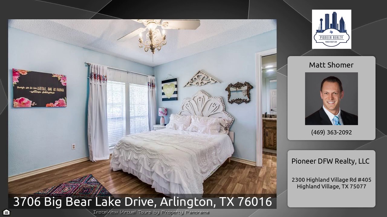The Virtual Tour for the property at 3706 Big Bear Lake Drive, Arlington, TX 76016 listed for $325,000: Other homes for sale by Matt Shomer of Pioneer DFW Realty, LLC: This immaculate 4 bed 3 bath ranch style home shows beautifully with updated flooring, granite in baths, stainless steel appliances & more! Interior boasts Italian porcelain tile, plantation shutters, wood blinds, skylight & stone fireplace in great room. Formal dining has wet bar & French doors to patio. Chef's island kitchen offers gas cooking, double oven & tumbled marble backsplash. Split bedrooms with Jack-n-Jill bath. …