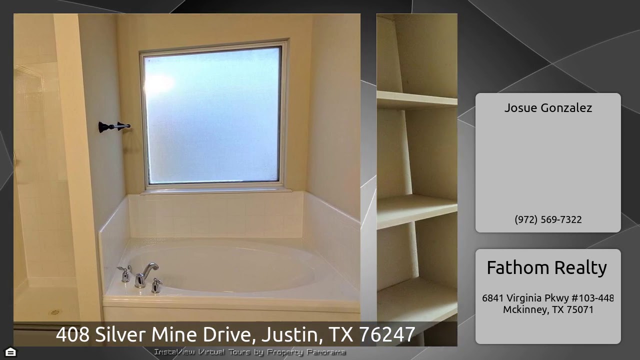 The Virtual Tour for the property at 408 Silver Mine Drive, Justin, TX 76247 listed for $1,995: Other homes for sale by Josue Gonzalez of Fathom Realty: Beautiful updated-upgraded 5BD home in private & peaceful subdivision! 2019 handsome tile flooring, kitchen appliances (includes double ovens & 3 rack dishwasher), kitchen granite countertops, backsplash, painted interior 2019 throughout. Down- formal dining w french doors that can be used as study-office, open layout w galley kitchen & nook overlooking family room w wood burning fireplace, sitting bar from family room to kitchen. Spacious …