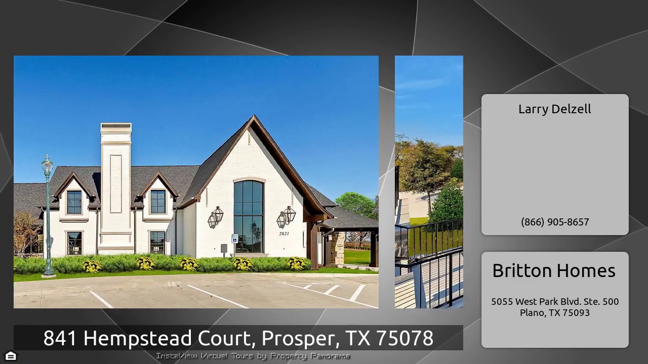 The Virtual Tour for the property at 841 Hempstead Court, Prosper, TX 75078 listed for $519,900: Other homes for sale by Larry Delzell of Britton Homes: PERRY HOMES NEW CONSTRUCTION! Library with French doors set at two-story entry. Open kitchen hosts inviting island with built-in seating space, 42 inch cabinets, stainless steel and walk-in pantry. Two-story dining area opens to two-story family room with wall of windows and wood mantel fireplace. Designer tile floors throughout. First-floor master suite includes bedroom with wall of windows. Dual vanities, garden tub, separate glass- …