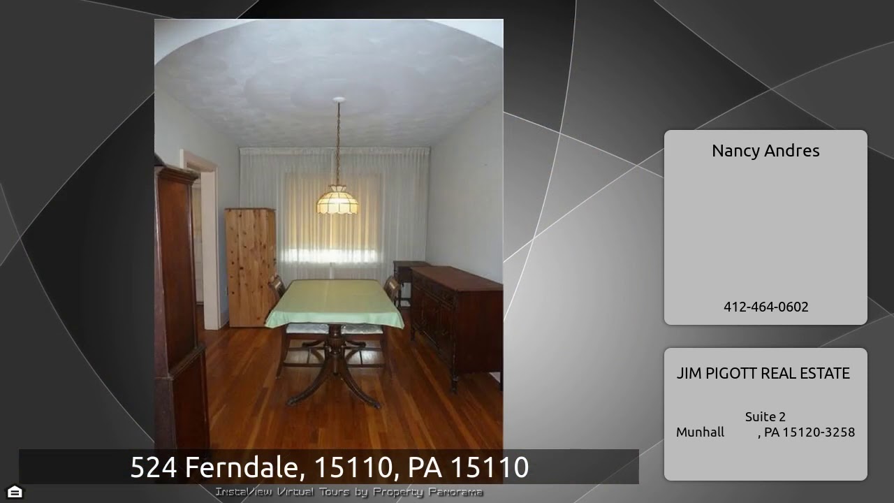 The Virtual Tour for the property at 524 Ferndale, 15110, PA 15110 listed for $49,500: Other homes for sale by Nancy Andres of JIM PIGOTT REAL ESTATE: This brick two story has a lot to offer. It has a large front porch that leds to formal entry hall with original wood, French glass doors, and hall to living room. Stained glass windows adorn a decorative fireplace on both sides offering light to the room. A formal dining room has an updated kitchen on the other side. Three good sized bedrooms located on second floor are all well maintained with hardwood floors through out. Furnace, hotwater …