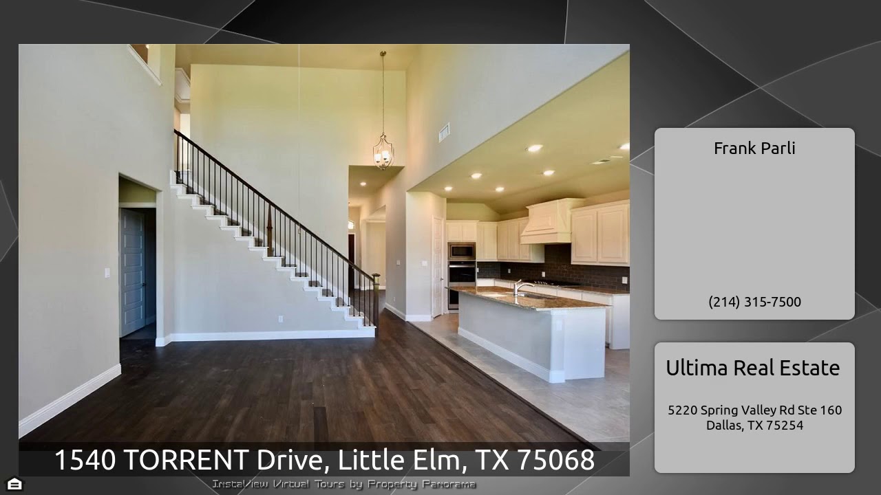 The Virtual Tour for the property at 1540 TORRENT Drive, Little Elm, TX 75068 listed for $389,000: Other homes for sale by Frank Parli of Ultima Real Estate: BRAND NEW in VALENCIA ON THE LAKE! Beautiful Country French design. Elegant front door leads to beautiful Atrium. Engineered WOOD FLOORS IN FAMILY, STUDY, AND F. DINING! Study with French Doors OR Guest BR down with FULL BATH. Large F. Dining. Huge Master Down featuring a bay window. Large 2-story Family Room. Great Kitchen with Custom Cabinetry and Granite tops. 3 bedrooms and GAME up. Master Bath has custom cabinetry with Granite …