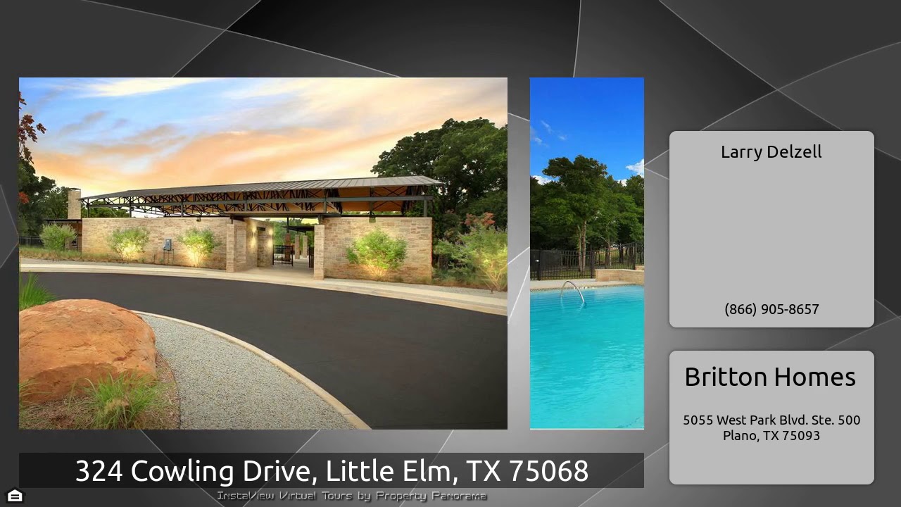 The Virtual Tour for the property at 324 Cowling Drive, Little Elm, TX 75068 listed for $488,900: Other homes for sale by Larry Delzell of Britton Homes: PERRY HOMES NEW CONSTRUCTION! Library with French doors set at two-story entry. Wood look tile flooring throughout. Kitchen and dining area open to two-story family room with wall of windows and fireplace. Kitchen features 5-burner gas cooktop, large walk-in pantry and generous island with built-in seating space. First-floor master suite includes master bath with dual vanities, garden tub, separate glass-enclosed shower and two large walk- …