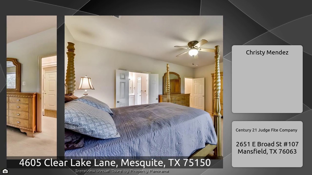 The Virtual Tour for the property at 4605 Clear Lake Lane, Mesquite, TX 75150 listed for $279,900: Other homes for sale by Christy Mendez of Century 21 Judge Fite Company: This home boasts with interior designs throughout. A Formal dining room showcasing an exquisite chandelier entrance. Executive Study with French doors. Open kitchen with Stainless Steel appliances, featuring a breakfast nook area. Bright & spacious living room with vaulted ceilings and a gas fireplace. Master suite is on the main level, supersized master bath with garden tub, separate shower, double sinks, and walk in …