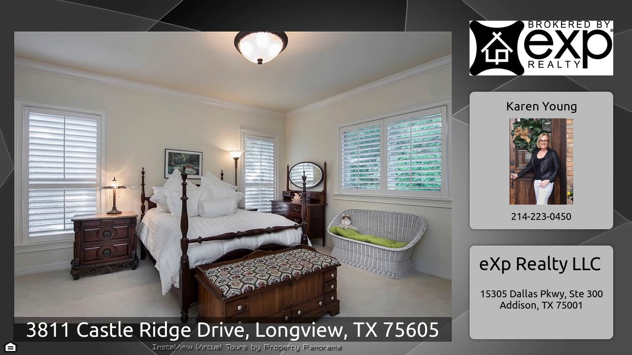 The Virtual Tour for the property at 3811 Castle Ridge Drive, Longview, TX 75605 listed for $575,000: Other homes for sale by Karen Young of eXp Realty LLC: French charm and southern luxury are baked into this well-appointed Scott Hamilton design. Soaring ceilings and sweeping windows spill tons of natural light into the open living areas. Palatial foyer. Impeccable home. Private backyard hosts infinity pool and spa with privacy fence and wide views of the woods and creek behind. Formal dining, butler’s pantry, office, 2 spacious living areas (with HD projection room), Chef’s Kitchen with …