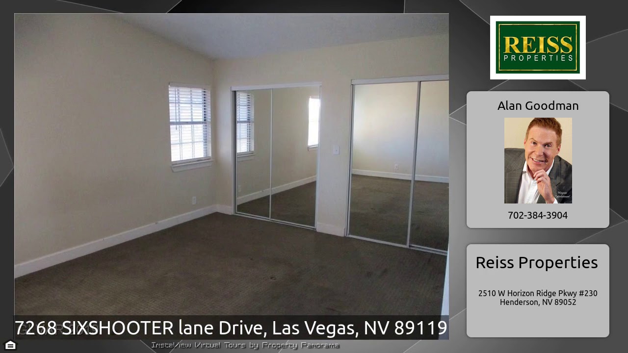 The Virtual Tour for the property at 7268 SIXSHOOTER lane Drive, Las Vegas, NV 89119 listed for $350,000: Other homes for sale by Alan Goodman of Reiss Properties: Beautiful Remoldeled Home With Custom Kitchen With Granite Counters With Bar Breakfast. Recessed Lighting, Pantry With Extra Refrigerator And Washer And Dryer Including. Sunken Family With Double French Doors To Backyard. Double French Doors By The Dining Room. Between The Family And The Living Rooms. All Slate Tile Downstairs. 1/2 Bath Downstairs 4 Bedrooms Upstairs. Huge Pool/Spa But The Backyard Has Extra Walls Windows.