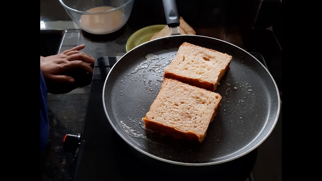 Butter the pan once the pan is mildly hot. While the butter is melting, soak a slice of bread in the batter, then place on the pan. Cover and cook on both sides for 3 minutes on a medium flame.
