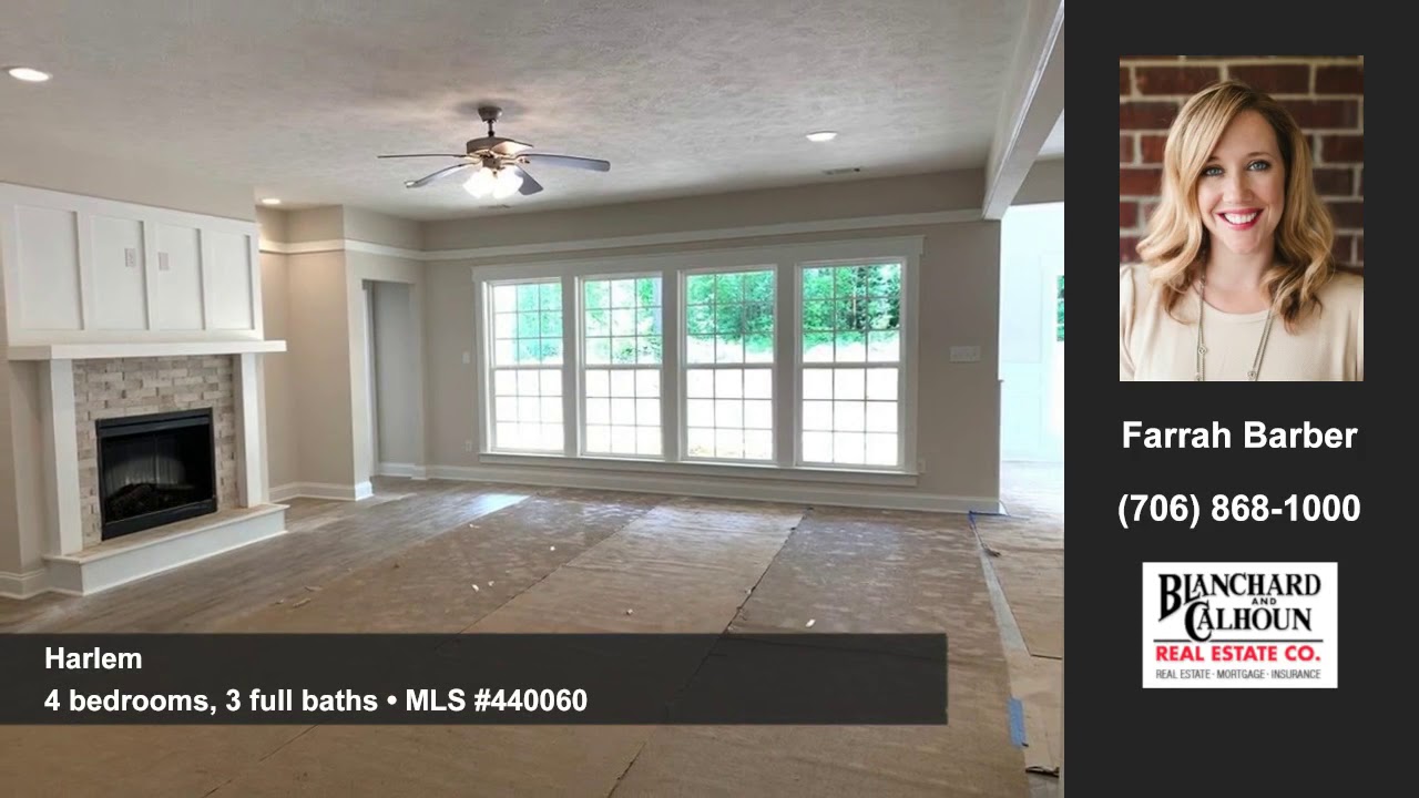 Let Farrah Barber of Blanchard & Calhoun show you this home at 349 Drayton Way in Harlem. This gorgeous, French Country Estate is ready and waiting for you. This one story home is nestled on over an acre of land in Hatcher Glen! It boasts a gourmet chef’s kitchen with a large center island/breakfast bar, corner pantry, gleaming granite counters & stainless appliances Just off the kitchen is an Amazing Casual Dining Area You’ll find 4 bedrooms and 3 full baths in this home. You’ll have plenty of closet space. Contact Farrah Barber at Blanchard & Calhoun to arrange for a personal showing.