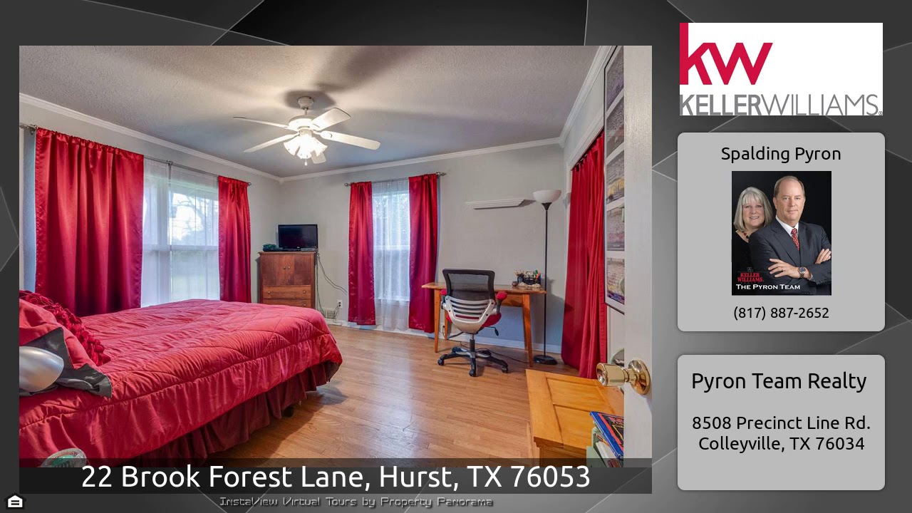 The Virtual Tour for the property at 22 Brook Forest Lane, Hurst, TX 76053 listed for $279,900: Other homes for sale by Spalding Pyron of Pyron Team Realty: Amazing property nestled on over a .8 Acre cul-de-sac lot offers 3 spacious bedrooms, 2 full baths, large kitchen with SS appliances, breakfast bar and a cozy breakfast nook, inviting formal dining with sitting area, french doors lead off of the dining into the family room & private office, master suite features a pedestal sink & separate shower along with retro tile. Beautiful hardwoods in living and bedrooms. Your private & serene …