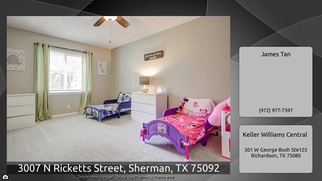 The Virtual Tour for the property at 3007 N Ricketts Street, Sherman, TX 75092 listed for $194,900: Other homes for sale by James Tan of Keller Williams Central: Tons of updates! Double entry doors! Laminate floors in entry,family rm,hallways! Huge family rm with warm raised brick hearth fireplace,c-fan,glass french door views pool & wood deck! Big formal dining can be used as study,play or hobby rm! Updated kitchen in 2017 with 20×20 tiles,hickory wood cabinets with lazy Susan,dishwasher,tumbled granite backsplash & in 2019 light fixtures. Decorator knobs,radiant cook top,vintage double …