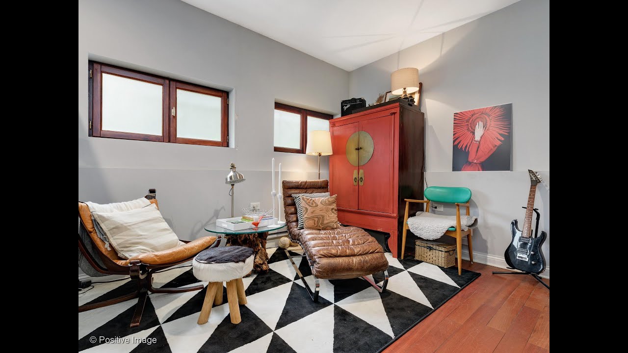 Enter this design-forward 2 bed + family room + office 2-level home and be WOWED! Recently remodeled by a local designer, there are many details not to miss! South- and west-facing floor-to-ceiling French doors with Juliette balconies greet you with tons of natural light streaming into the home. The first level living room features a dramatic fireplace with striking porcelain tile to the ceiling, designer light fixtures and gorgeous hardwood flooring throughout the main level. High ceilings and crown molding finish the look! An easy open flow into the kitchen creates a perfect ‘heart of the home’ feel. The kitchen boasts refinished cabinets, stainless steel appliances, eat-in island, new hardware, upgraded pendant lighting, as well as abundant countertop space and plenty of cabinets for storage. Find the large dining area with room for 6 just off the kitchen, providing the perfect space for in-home dining or entertaining alike. The generously sized master bedroom affords plenty of space for a king size bed and features a full wall of closets with built-ins including hanging shelving, drawers and additional storage built-in above the closets. The recently remodeled master bathroom is a designer’s dream with porcelain tile floors, black framed glass window pane walk-in shower with tile to the ceiling, bench seating and niche shelving. A double bowl vanity, linen closet and extra vanity round out the layout-every detail was considered! Enter the bright and spacious second bedroom through a beautiful French door and appreciate the large west-facing window and designer lighting. The lower level bonus room allows for additional lounge space as well as an amply-sized home office and features tall ceilings, under staircase storage and direct access to the garage parking space. This home is in the perfect Bucktown location with easy access to parks, dining, grocery shopping, transportation, the 606 and is very close to Logan Square as well. Enjoy the added bonus of 2 parking spaces including 1 attached garage space!