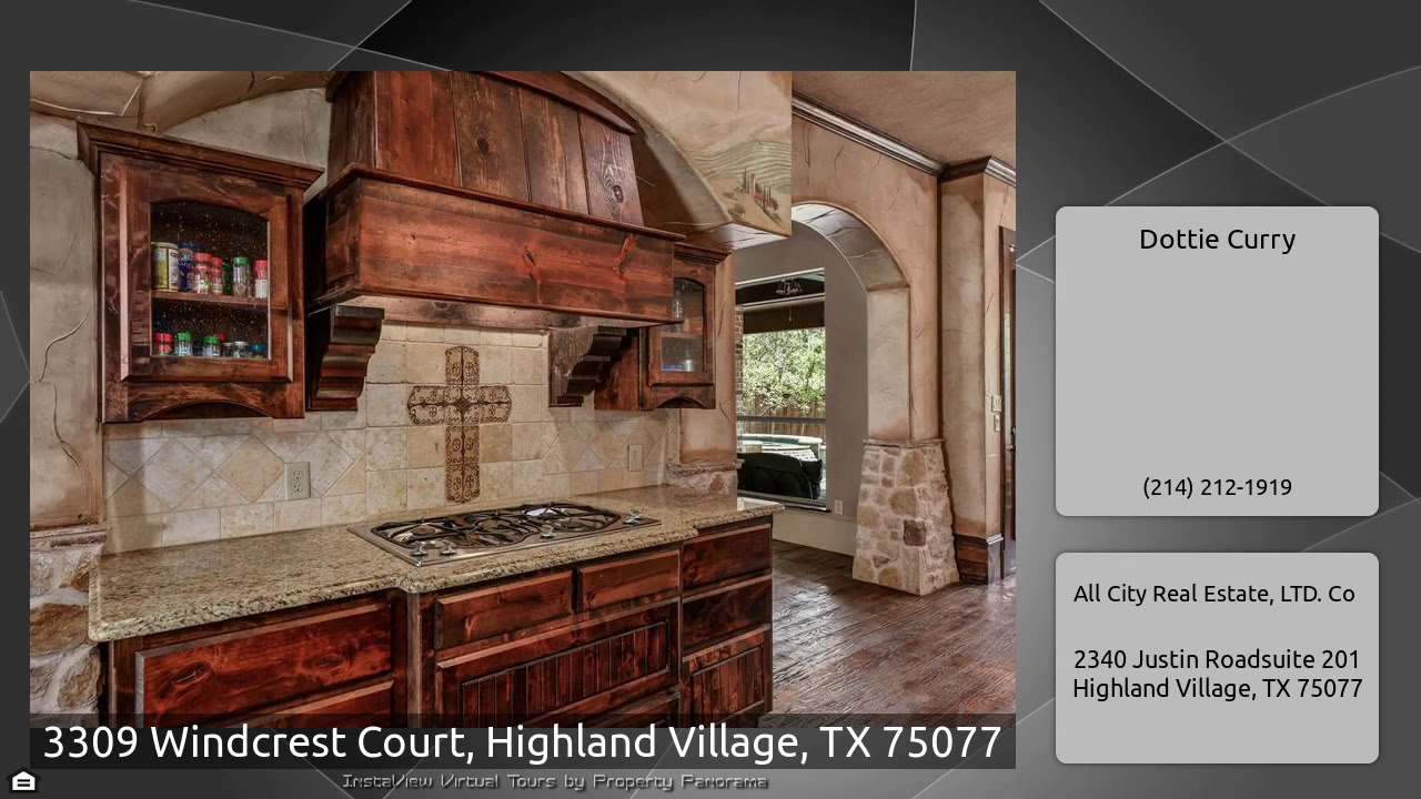 The Virtual Tour for the property at 3309 Windcrest Court, Highland Village, TX 75077 listed for $649,900: Other homes for sale by Dottie Curry of All City Real Estate, LTD. Co: Stunning French Tudor home in Highland Shores! Exquisite craftsmanship and custom detailing throughout. Gorgeous handscraped hardwoods, fresh paint & new carpets in June 2020. Grand entry opens to study with French doors and dining room with access to outdoor stone fireplace on private patio. Chef's dream kitchen boasts knotty alder cabinetry, huge island and stainless steel appliances including double ovens and gas …