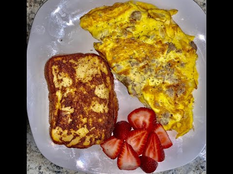 #Food #GoodEats #BreakfastJust for fun 🙂 breakfastFranceFrenchFrench recipesomeletRecipeSausagestrawberriesToastVideoVlogYouTube