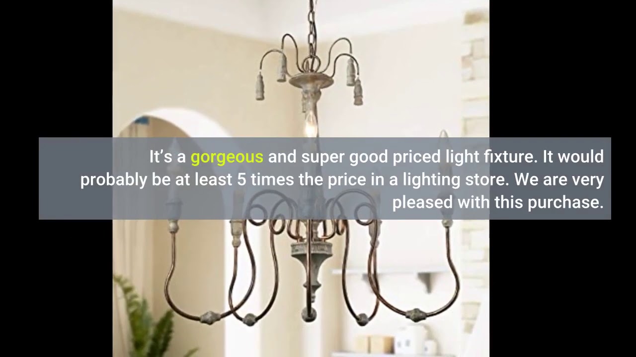 – LALUZ A03299 French Country Chandeliers for Dining & Living Rooms Bedroom, Bathroom, Entryway, Kitchen, Farmhouse Wood Light Fixture, (Distressed Shabby Chic Finish)