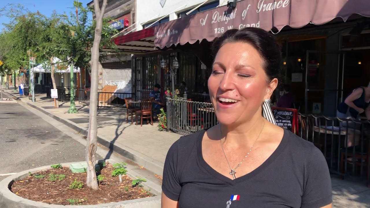 City of Escondido supporting downtown restaurant with Street-Side Dining on July 10, 2020. Alberta Agyan share her story about opening up A Delight of France Bistro to outside dining on the street. The city heard the voices of downtown restaurants for help and Street Side Dining happened.