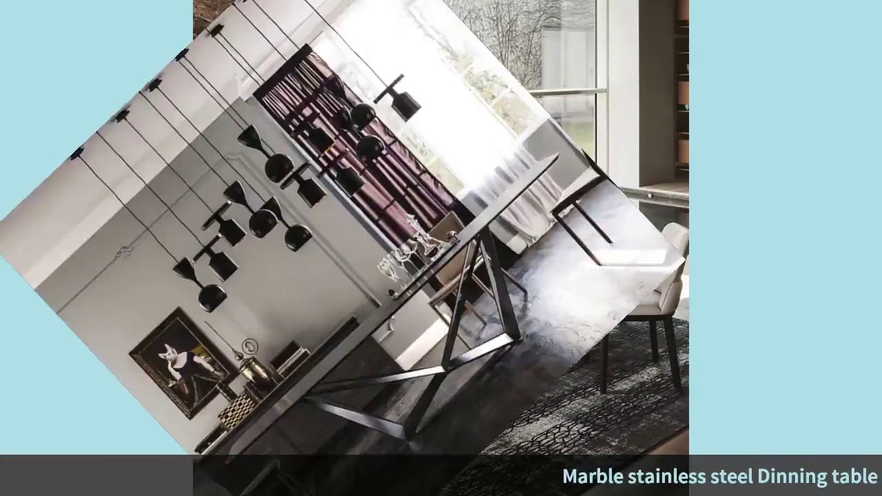 Marble stainless steel Dinning table with dining room set with 6 8 chairs, leather wine cabinet,leather dining sideboard