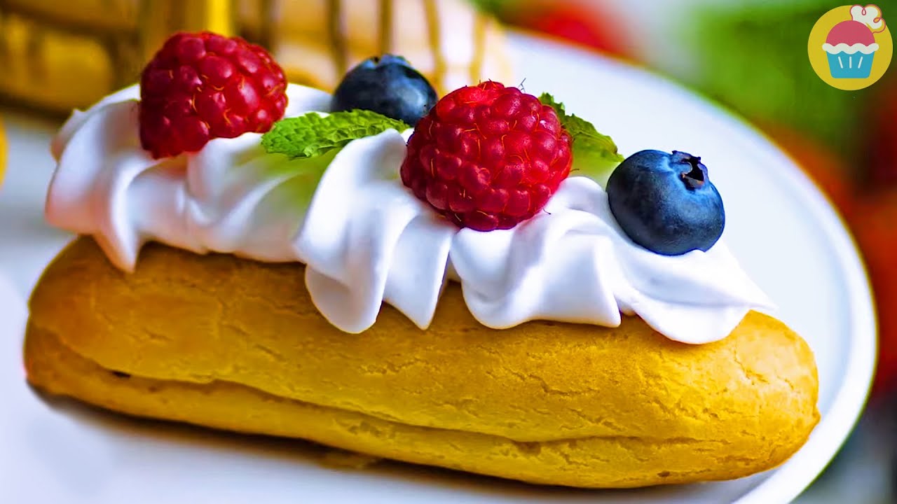 To start, pour 100ml water along with the same amount of Whole milk in a pan. Then add butter, vanilla extract, cake flour, bread flour, and cook this together for a while. Mix 4 eggs in the batter to soften it before it is baked for 30 minutes.